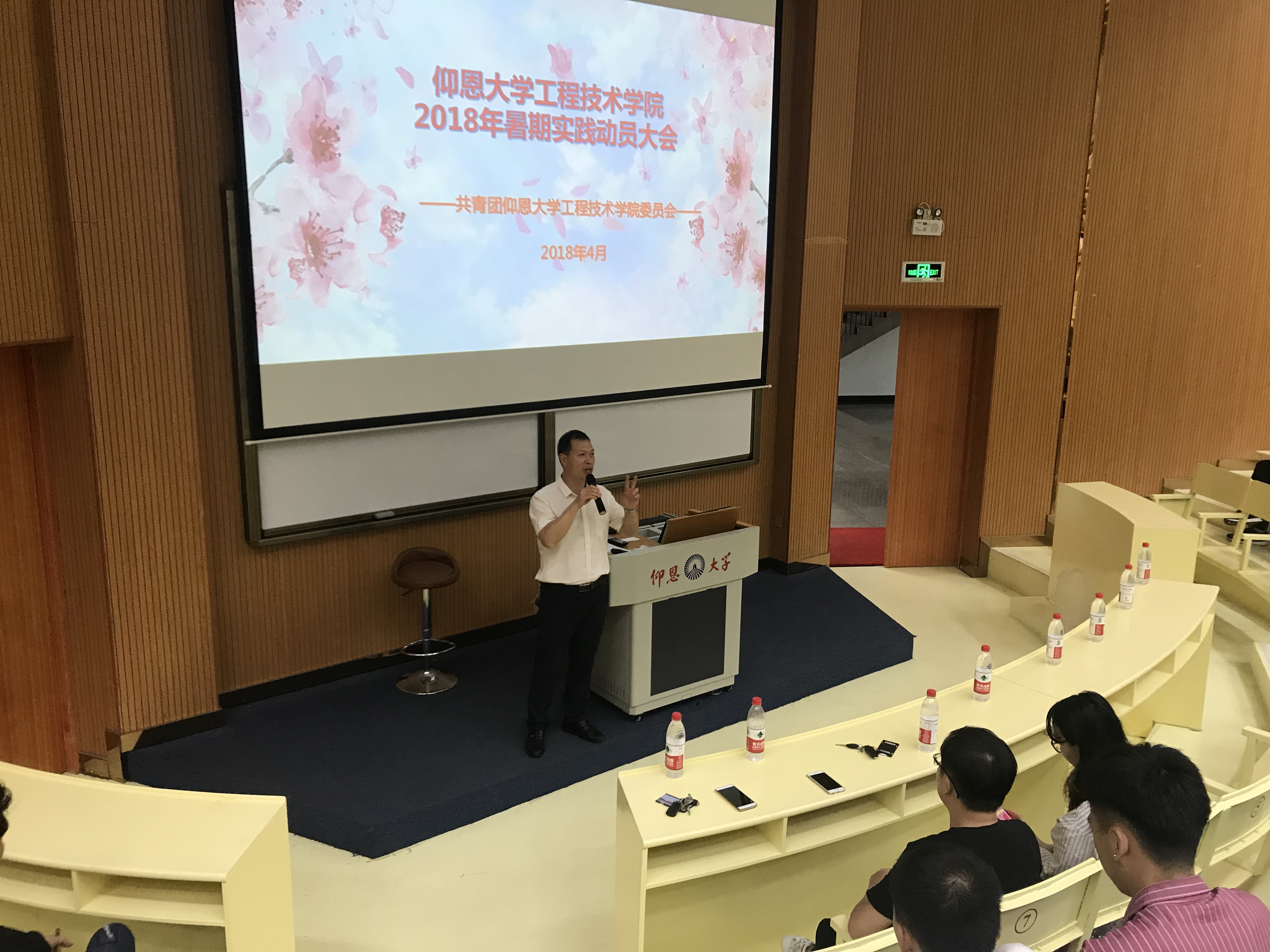 4月23日下午4点,beat365中文官方网站2018年暑期实践动员大会在致知讲堂举行,beat365中文官方网站党总支书记兼副院长曾凤生、党总支副书记吕思仁、学院团委书记许淑琴及2018级全体同学出席了本次大会。