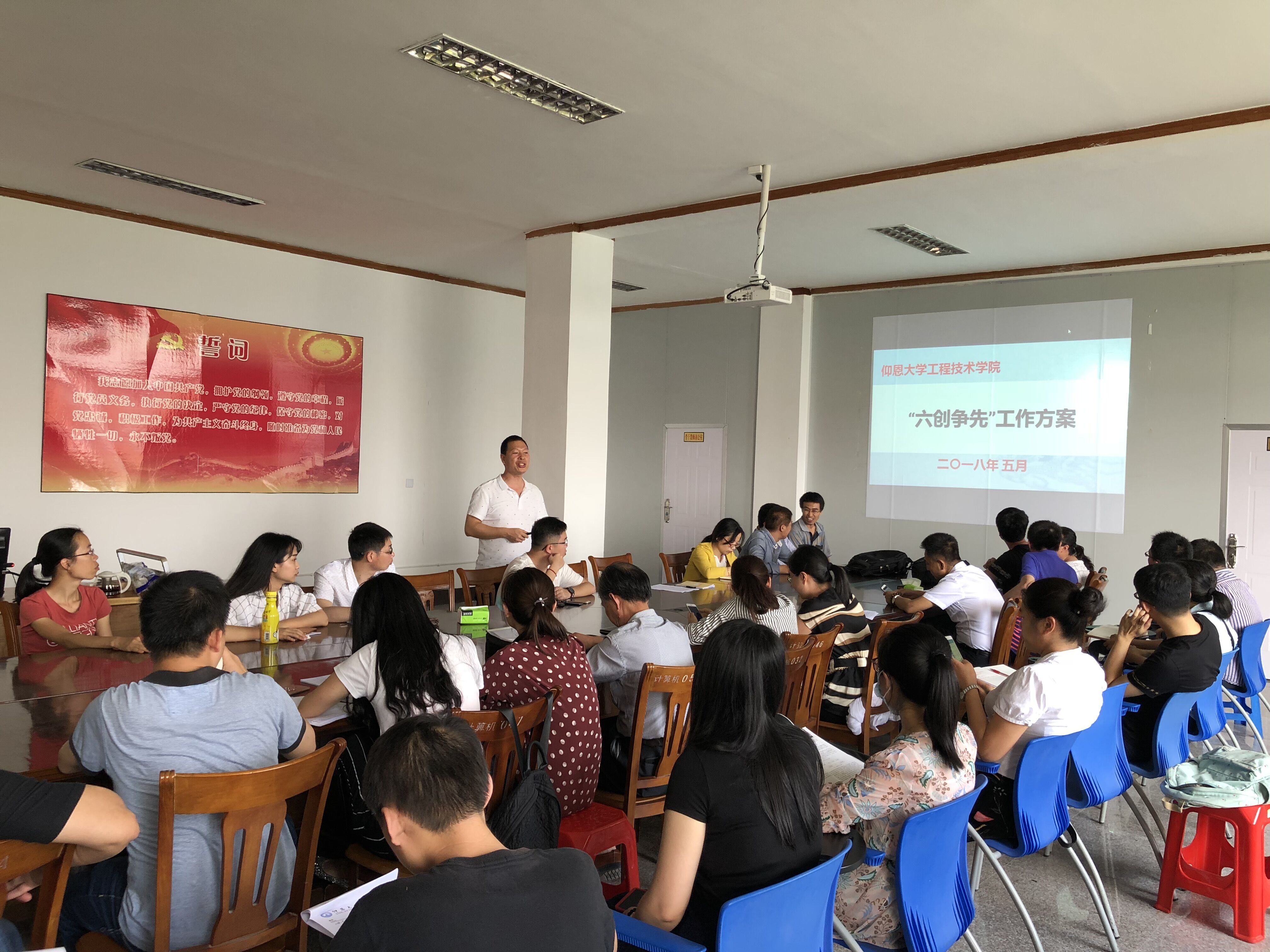 5月2日下午,beat365在泽钏楼会议室召开全院会议,学习和传达学校“六创争先”推进会精神并部署学院“六创争先”工作方案。会议由党总支书记兼副院长曾凤生主持,全院教职工参会。