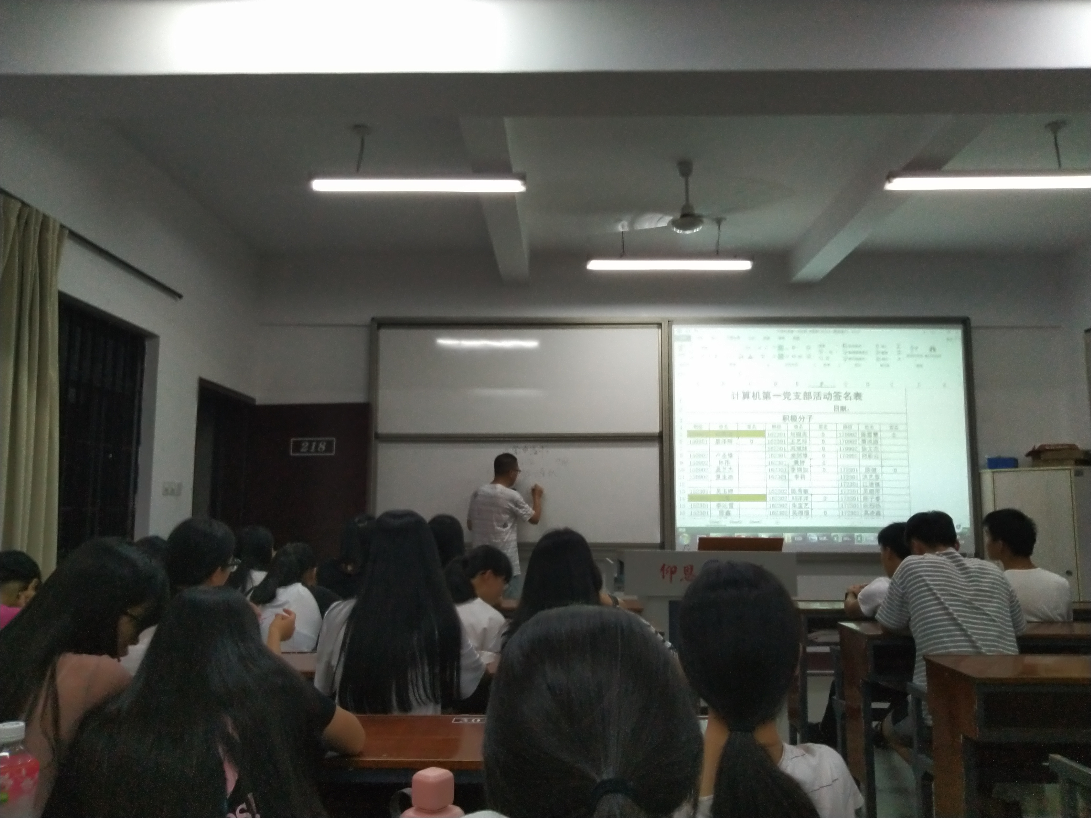 5月26日晚7点,计算机系第一党支部在共和楼218举行本学期第二次支部大会,此次会议由支部书记王波老师主持,支部全体党员,积极分子到场参加学习。