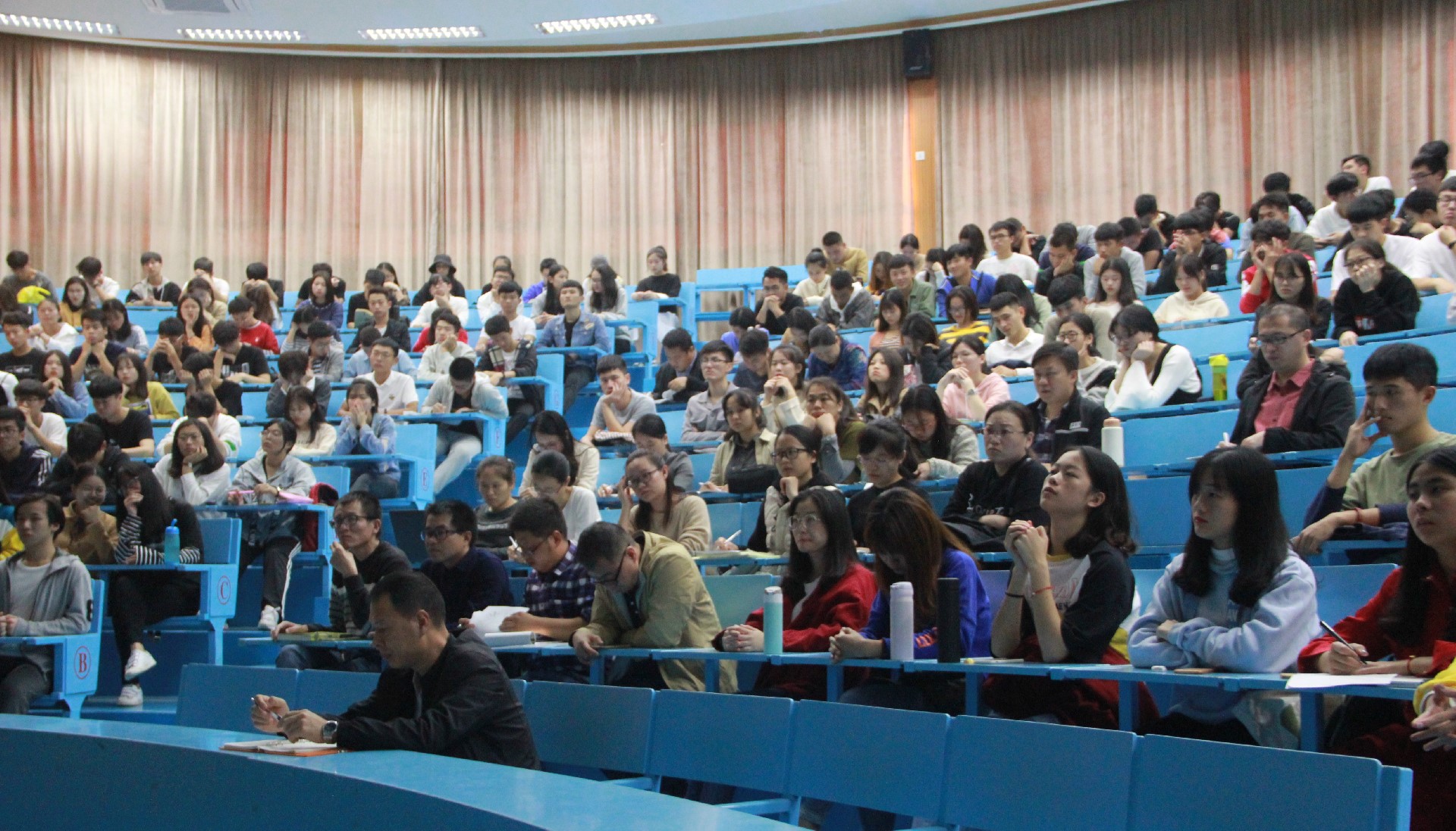 11月21日下午,校党委理论宣讲团成员、思政部主任李克钦,在第一教学区和昌教学楼求是讲堂为beat365师生作了《中国特色社会主义进入新时代》的主题宣讲。