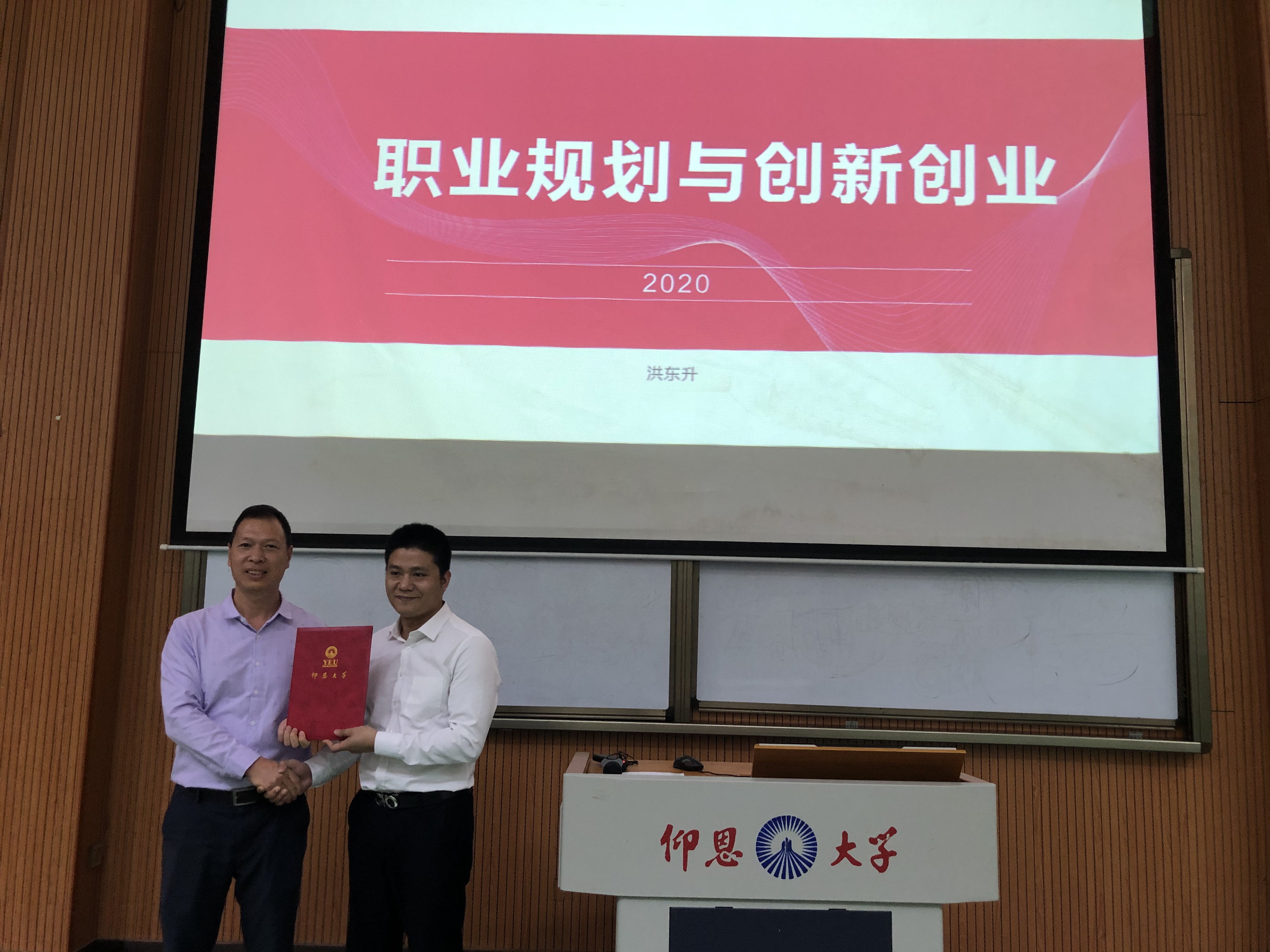 聘任仪式后,洪东升为现场的300多名师生做了题为“职业生涯与创新创业”的讲座。洪东升结合自己的职业经历,深入分析了在大数据背景下职业的变化趋势,介绍了现在大型企业对人才的需求和培养模式、企业育人机制,期望给同学们的人生职业规划以指导,希望在校大学生关注新职业,紧跟时代变化;还向同学们讲述了创业者需要具备的素质,结合自身创业经历为同学们创业提出建议,做好自我认知管理和提升自我,打造个人职业品牌。让现场师生受益匪浅。