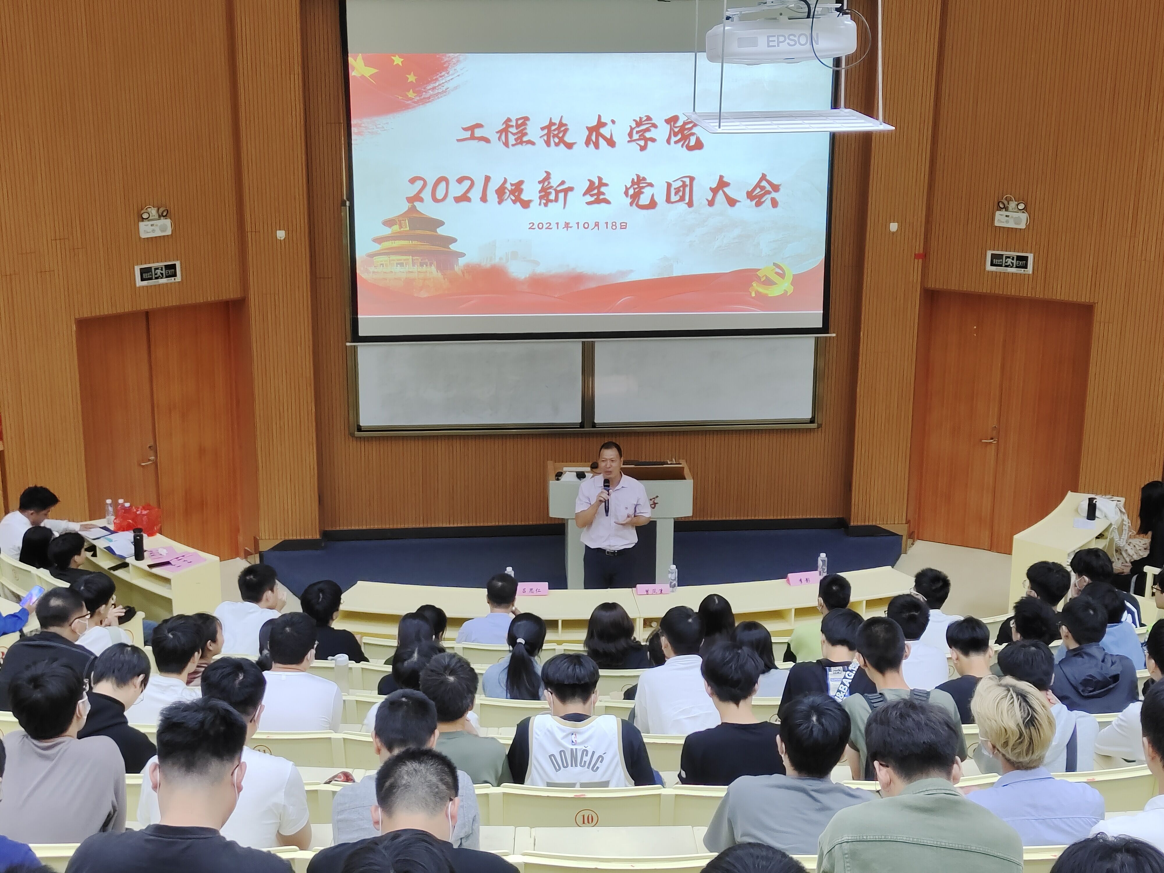2021年10月18日,beat365中文官方网站党总支在和昌楼召开了2021级新生党团教育大会。本次大会旨在引导大学生追求进步,帮助同学们更加深入地了解推优入党的流程,吸纳更多的同学积极地向党组织靠拢。学院党总支书记兼副院长曾凤生、教学副院长李影、党总支副书记吕思仁及全体21级新生参加了此次大会。