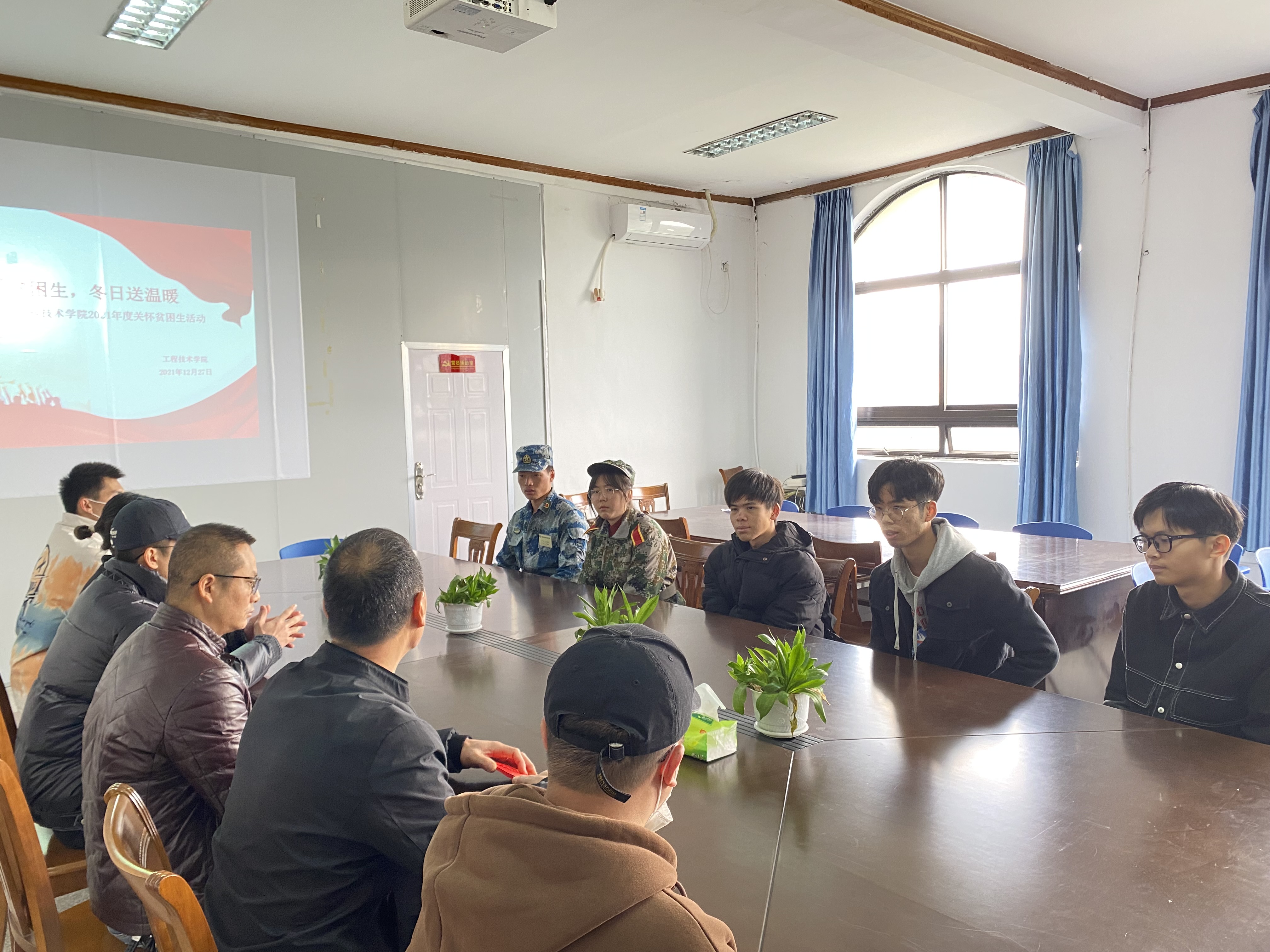 慰问会上,曾凤生代表学院向参会的各位困难学生发放节日慰问金和慰问品。他仔细询问每位同学的在校学习和生活情况,了解学生的现实困难和需求。同学们热情汇报自己的学习生活情况,对学院和领导的关心、关爱表示感谢。曾凤生鼓励同学们保持积极健康、乐观向上的生活态度,发扬吃苦耐劳的精神,努力克服学习和生活中的困难,践行“学会做人,守信笃行;学会做事,创业有成”校训精神。他叮嘱同学们要注意安全,保持和老师的联系,有困难及时向老师和学院反映,并祝愿同学们在新的一年里快乐生活,学习进步,健康成长!