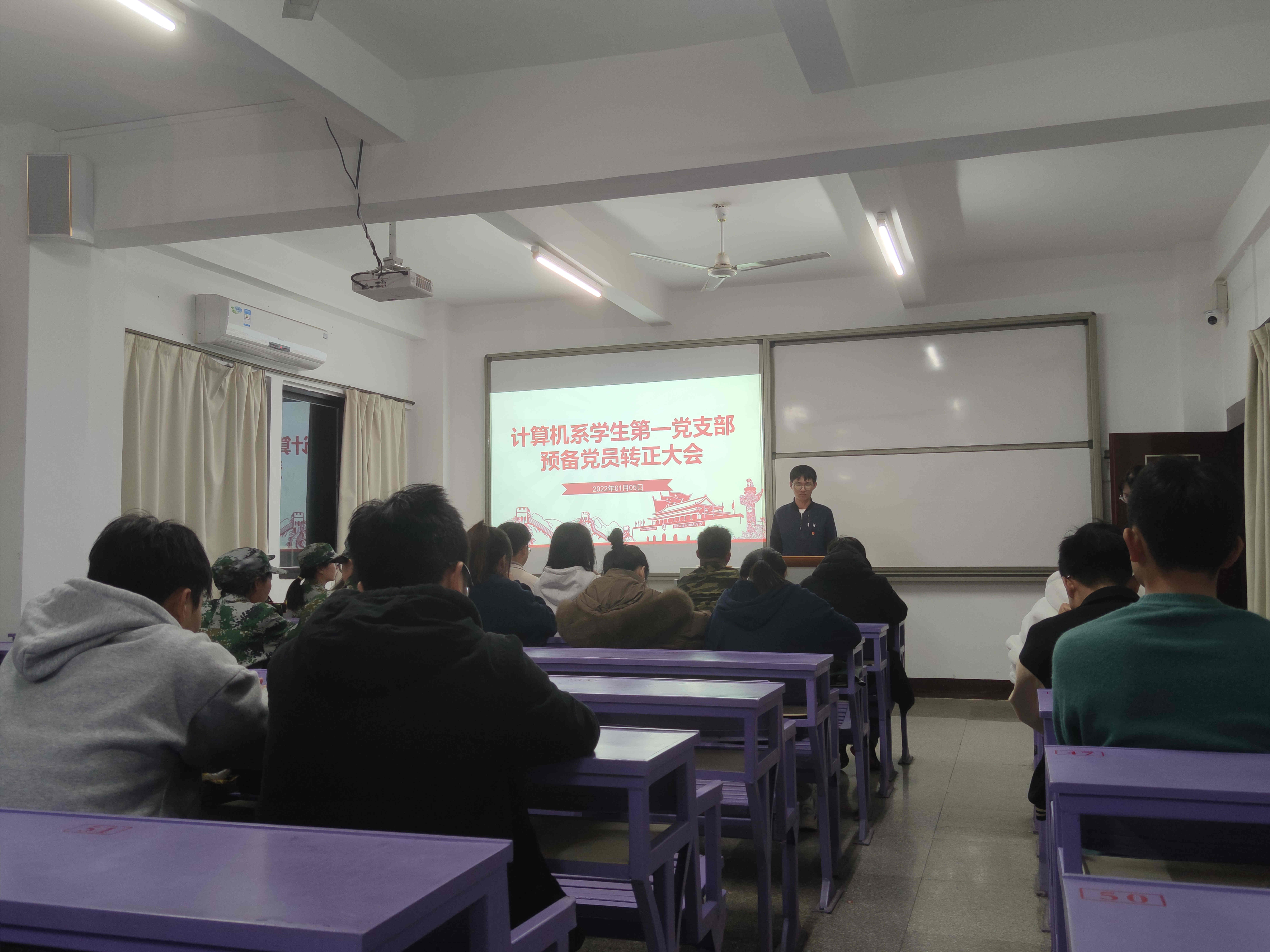 2022年1月5日晚上,计算机系学生第一支部于吉龙楼402举行预备党员转正大会。本次会议由学生第一党支部书记潘荣荣主持,出席本次大会的有宣传委员林增坦、组织委员周添丁及支部全体成员。