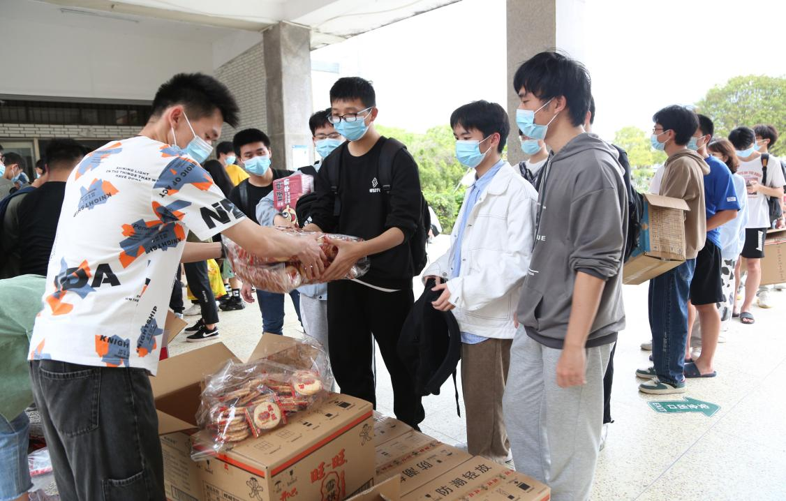 在疫情封校期间,为保障在校学院师生食品物资的充分供应,beat365中文官方网站6位辅导员带领学生志愿者于4月13日下午在创业园门口为同学们发放由爱心企业捐赠的食品物资。