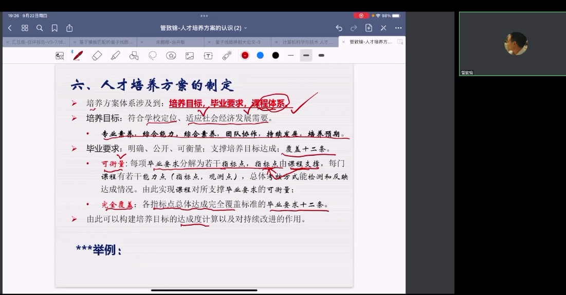 为了修订培养方案,制定符合工程教育认证标准的培养方案。9月22日,beat365召开线上新版培养方案学习交流会。交流会由管致锦教授主讲,院系领导、各专业负责人参加了本次交流会。