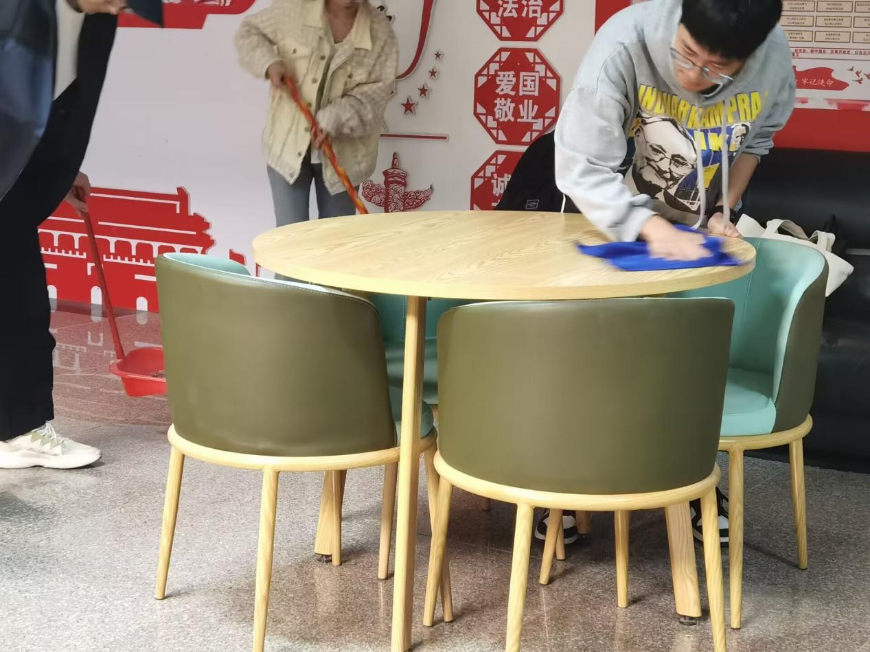 结束理论知识学习后,党员同志们的热情仍未减退,大家拿上清扫工具,带着雷锋精神的标准,认真细致地泽钏教学楼公共区域的每一个角落