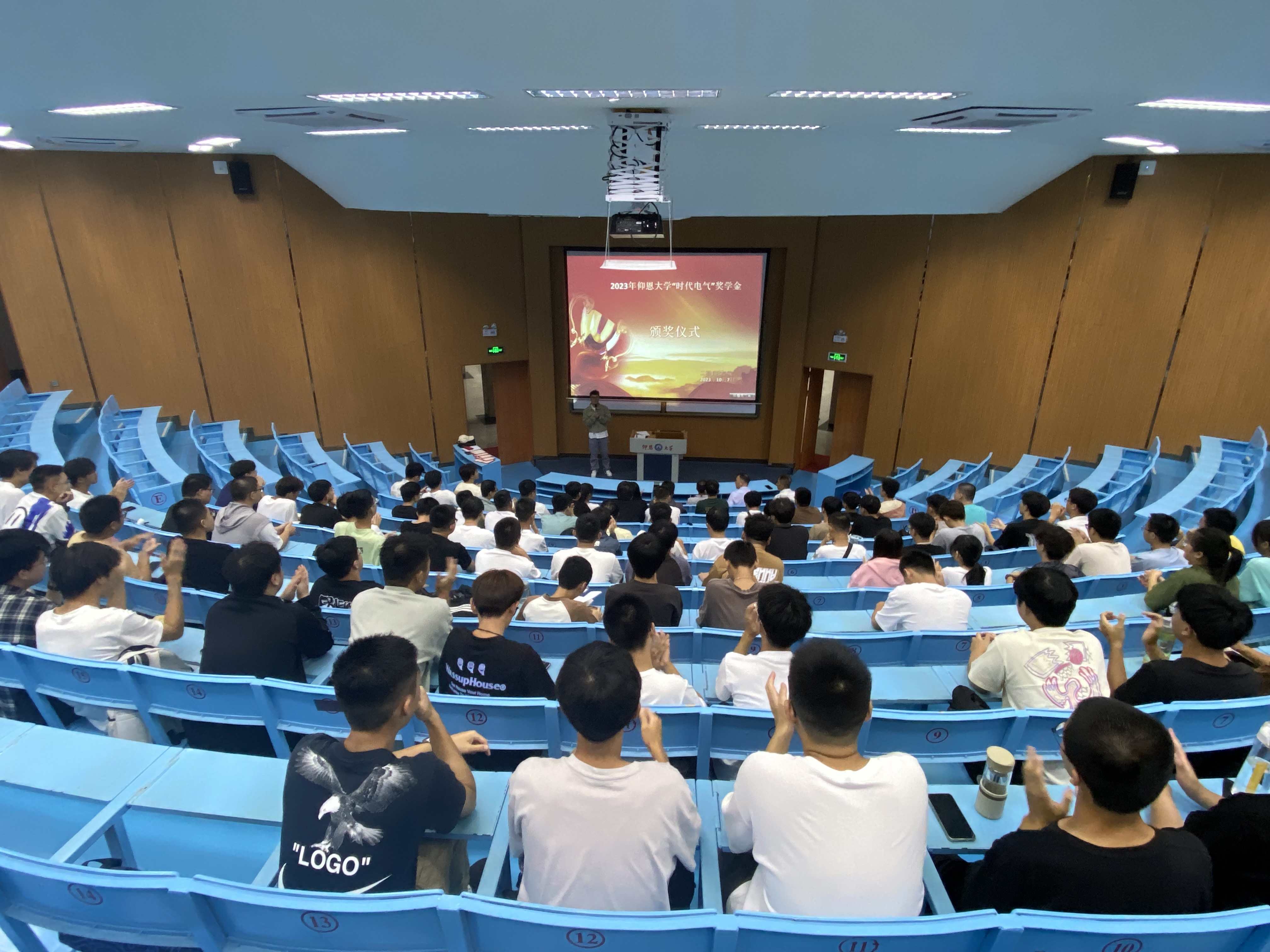 10月7日下午,beat365中文官方网站第二届“时代电气奖学金”颁奖仪式在第一教学区和昌楼求是讲堂顺利举行。学院党总支书记曾凤生、电气工程及其自动化系主任陈永健老师、刘明真老师、辅导员蒋心益老师以及2023级电气系全体学生参加了本次活动。颁奖仪式由蒋心益主持。