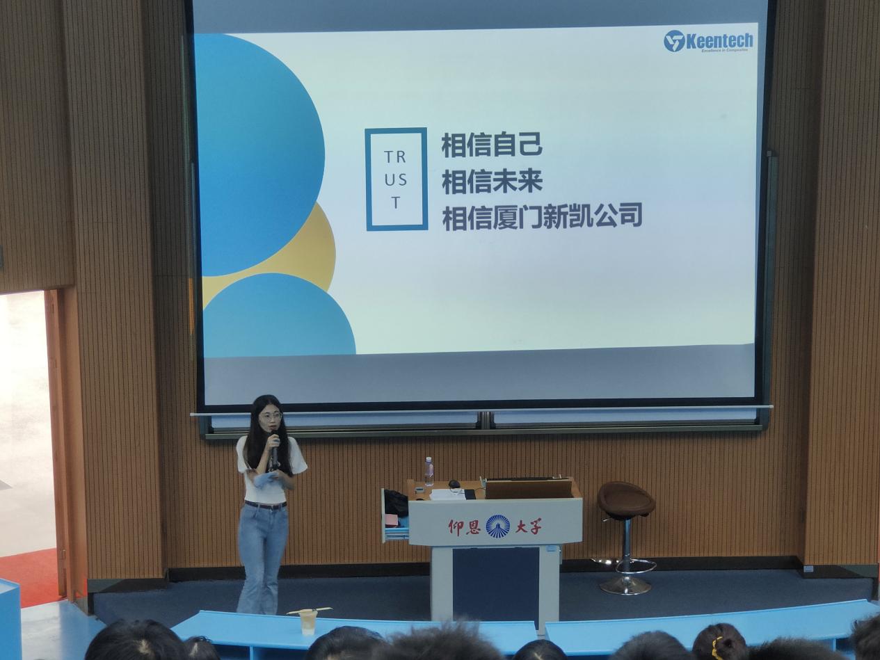10月11日,beat365中文官方网站于beat365中文官方网站第三教学区和昌教学楼致知讲堂召开厦门新凯复材料科技有限公司校园招聘宣讲活动,电气工程及其自动化专业、工业工程专业毕业生到场聆听。