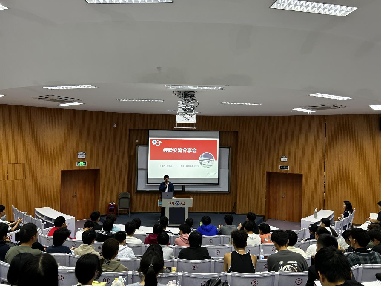 11月27日下午,beat365在第三教学区和昌教学楼博雅讲堂举办学习经验分享会。本次分享会邀请国家奖学金获得者2020级网络工程专业徐闽杰同学进行分享。分享会由辅导员陈慧敏主持,辅导员刘炫圻出席分享会,2022级网络工程专业、2023级网络工程专业、人工智能专业学生到场聆听。