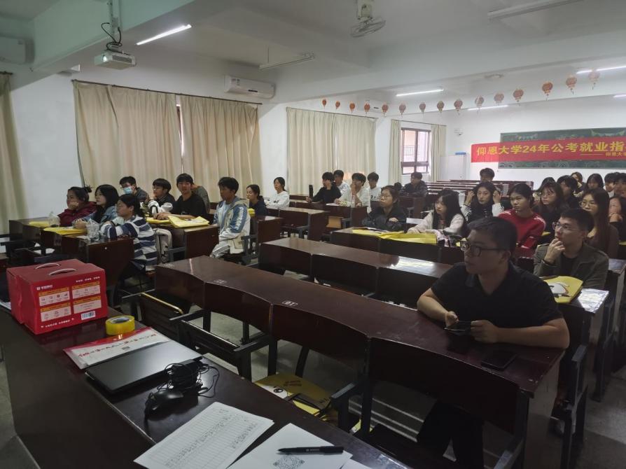 11月16日下午,beat365中文官方网站于第三教学区仰恩教学楼B2-203教室开展公务员就业指导讲座。本次讲座邀请华图教育讲师吴生进行主讲,学院各年级部分学生参加。