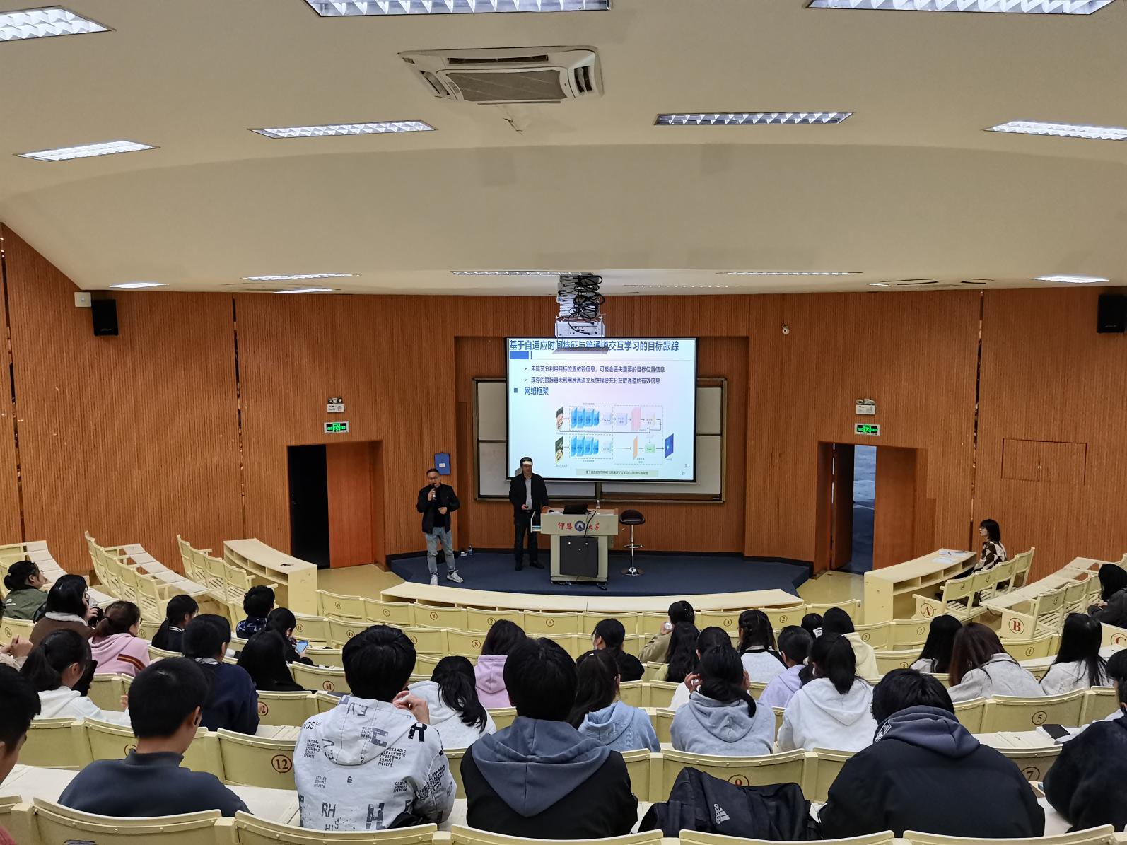 12月4日下午,beat365中文官方网站邀请南昌工程学院王军副教授来校在第三教学区和昌教学楼惟勤讲堂作《计算机视觉应用与目标跟踪》专题讲座。讲座由beat365常务副院长金承勇主持,2022级、2023级人工智能专业全体学生到场聆听。