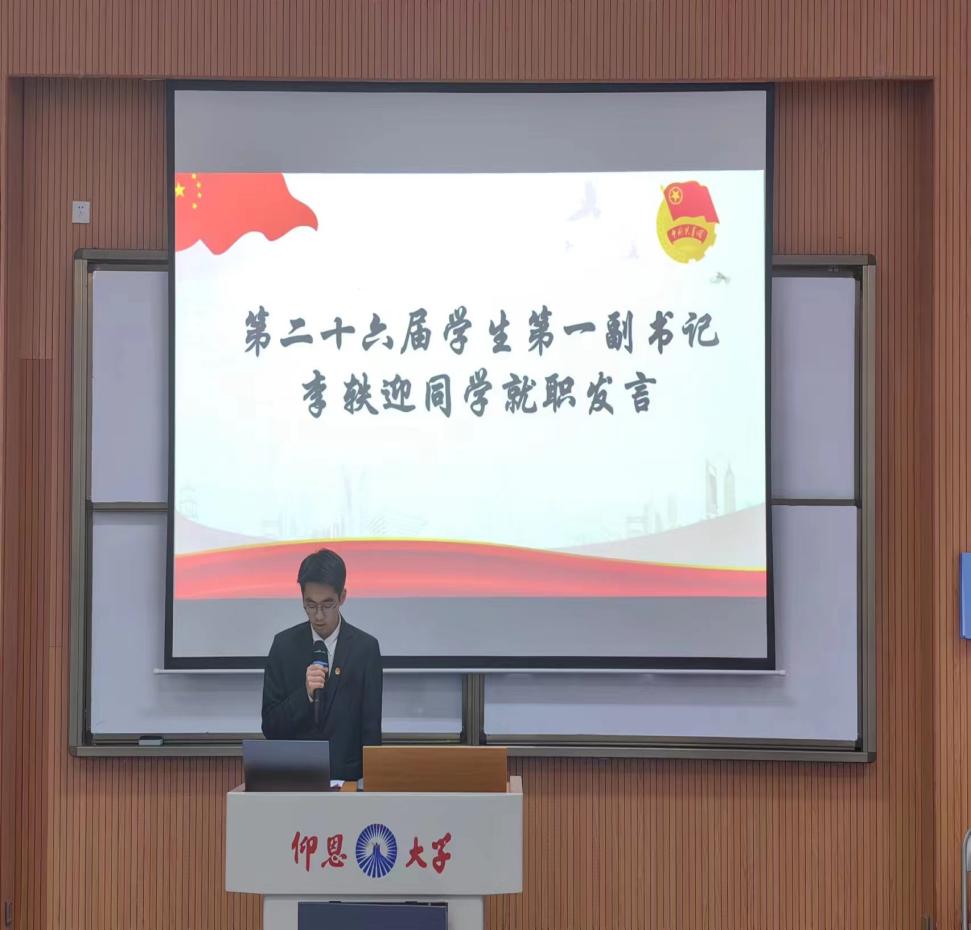会上,第二十五届学生第一副书记王佺晟同学和第二十六届第一学生副书记李轶迎同学进行发言,分别进行述职和就职发言,对在团委任职期间的工作进行总结,也对今后工作提出了新的展望。接着,对团委这一年来在工作中认真负责的干部和书记颁发了奖状以表彰其突出贡献,并希望新一届干部干事们在今后的日子里为beat365团委工作做出积极的贡献。