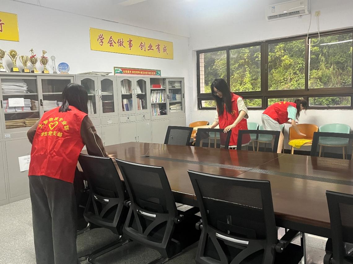 入党积极分子身着统一的志愿者服装,分工明确,配合默契。他们手持扫帚、拖把、抹布等清洁工具,对会议室的每一个角落进行了彻底清理。这次扫活动不仅提升了办公室环境的整体美观度,也为即将召开的各类会议创造了更加舒适、专业的环境,充分体现了入党积极分子们“从小事做起,从身边事做起”的实践精神。
