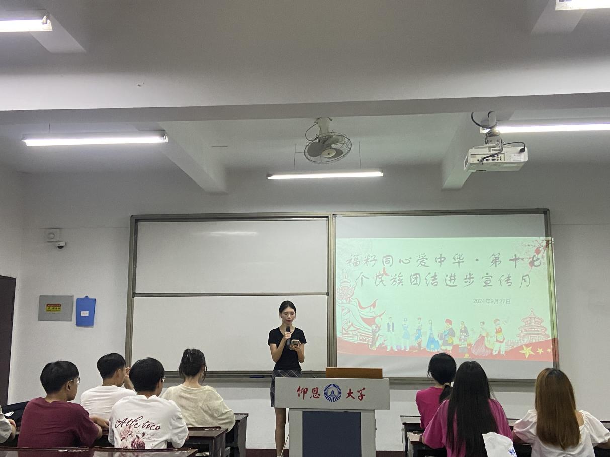 为进一步促进各民族之间的交流与融合,beat365中文官方网站beat365中文官方网站团委于9月26日在仰恩楼A3-105举办“福籽同心爱中华·第十七个民族团结进步宣传月”专题活动。来自各个民族的同学共同参与本次活动。