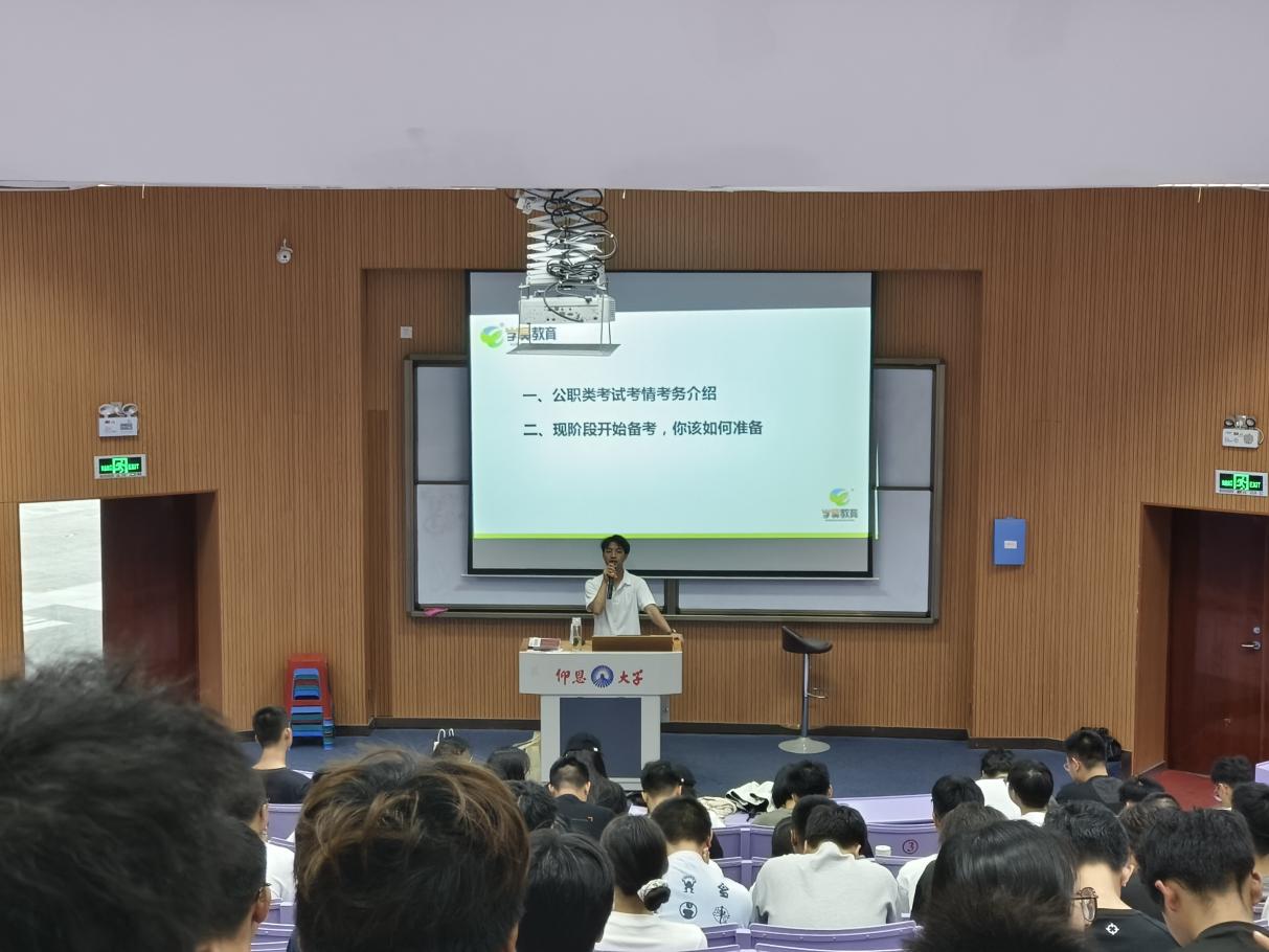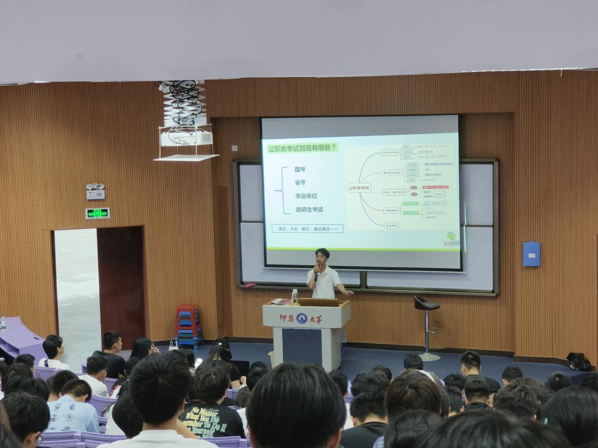 10月16日,beat365中文官方网站团委举办考公考编专项讲座之大学生就业方向选择与公职类考试备考,本次讲座由学昊教育专家讲师谢老师主讲,旨在帮助工院学子更好地规划未来就业方向,了解公职类考试的考情考务,并指导学子如何有效备考。