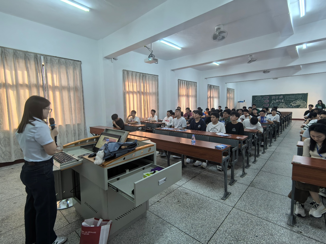 宣讲会伊始,人事李欢通过播放南方路机的宣传片,向在场的师生展示了公司的创立历程、发展现状及技术实力。随后李欢详细介绍了南方路机在物料处理、工程搅拌、建废处理三大板块的业务布局,以及公司在绿色循环建材整体解决方案上的创新突破,重点介绍公司的企业文化、发展前景以及招聘岗位、福利待遇等同学们关心的问题。