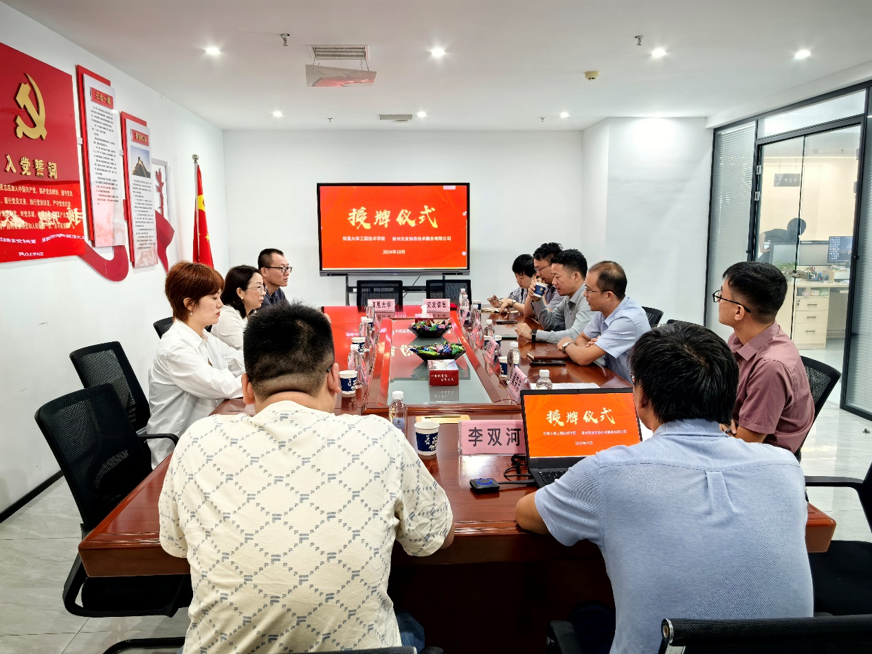 10月22日,beat365中文官方网站与泉州交发信息服务有限公司共建签约与授牌仪式在泉州交发信息服务有限公司隆重举行。泉州交发信息服务有限公司何桂鸣执行董事、黄荣志总经理、麻海涛董事,以及beat365中文官方网站李影副院长,李文老师、赵岩老师参加签约授牌仪式。李影副院长与黄荣志总经理共同签订《校外实践教学基地协议书》,并举行了授牌仪式。