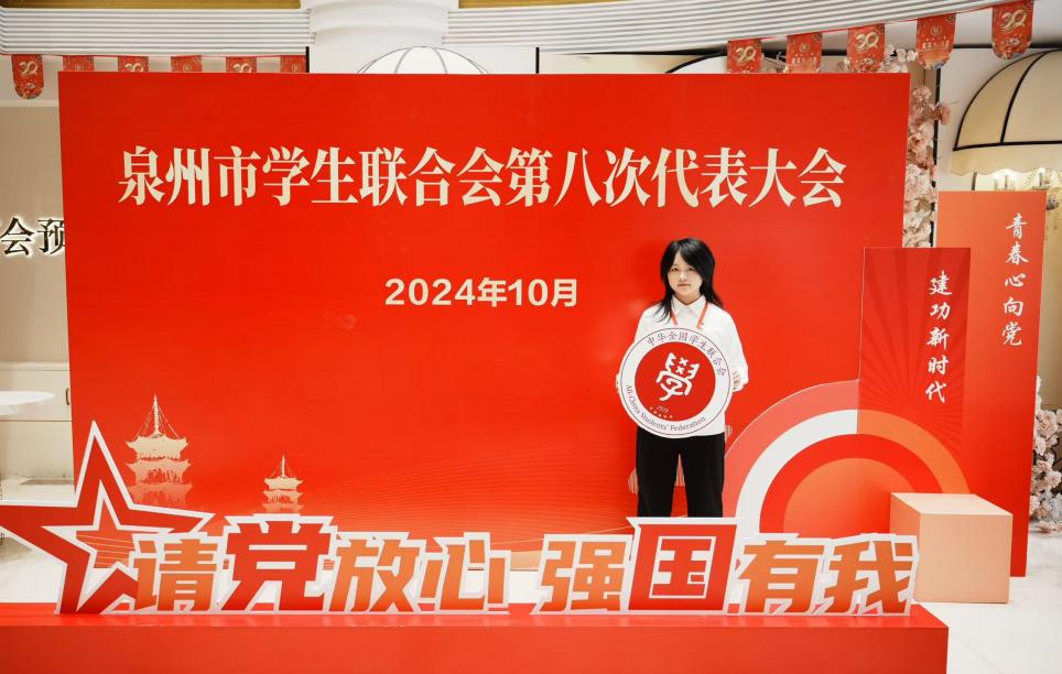 很荣幸获评泉州市优秀学生干部,此项殊荣不仅仅是对我以往工作和学习的认可和嘉奖,更是对我未来的鞭策和鼓励。感谢学校、学院对我的培养,以及老师和同学的支持。尽自己所能,全心全意为同学服务是我做一名学生干部的初心和使命,得到了一次次的成长和蜕变。今后我也会以更强烈的使命感和责任感展现出新的担当和作为!