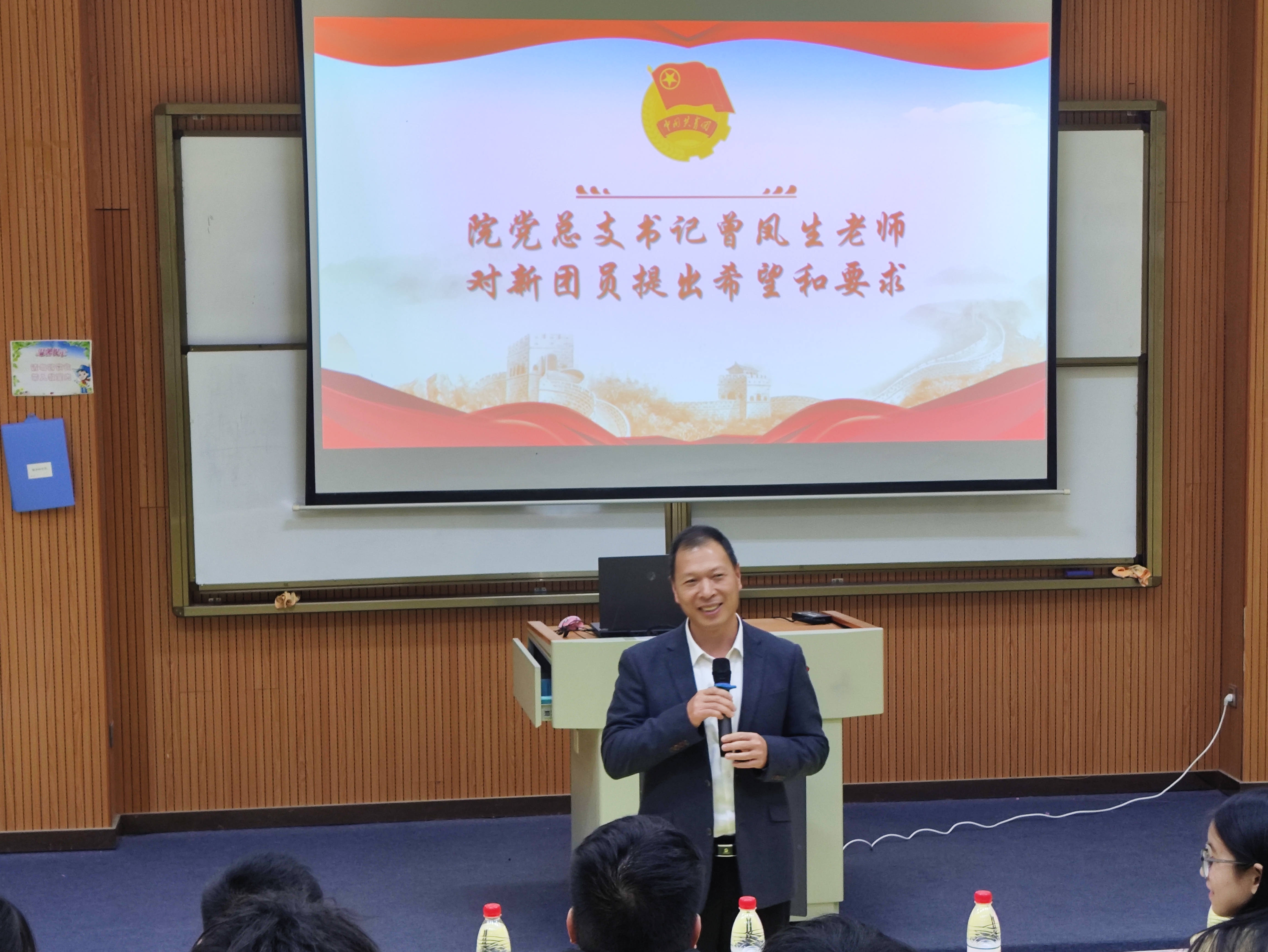 院党总支书记曾凤生老师对新团员提出希望和要求,他希望大家能坚定理想信念,勇于担当,时刻以团员标准要求自己,勤奋学习,不断提升,成为一名合格的社会主义建设者和接班人。