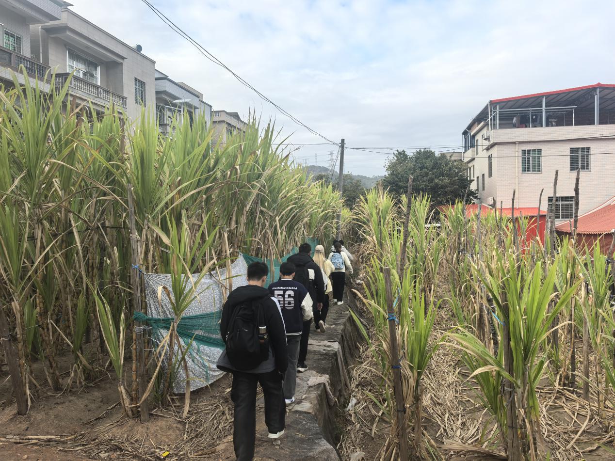 清晨8时,实践队11名成员在带队老师和队长的带领下抵达河市镇,当地村民热情接应,引导队伍深入甘蔗种植园。实践队用镜头记录下连片甘蔗林的壮美景象,更通过采访村民,捕捉到“从靠天吃饭到技术致富”的鲜活故事。