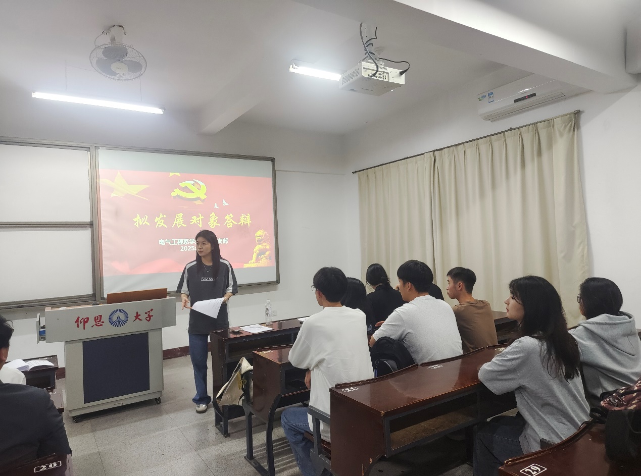 为推进党员工作发展,提升发展对象质量,beat365中文官方网站电气工程系学生第二党支部于4月20日下午在第三教学区仰恩教学楼A3-101教室召开拟发展对象答辩会。会议由电气系学生第二党支部书记陈慧敏主持,支部全体党员和部分入党积极分子参加会议。