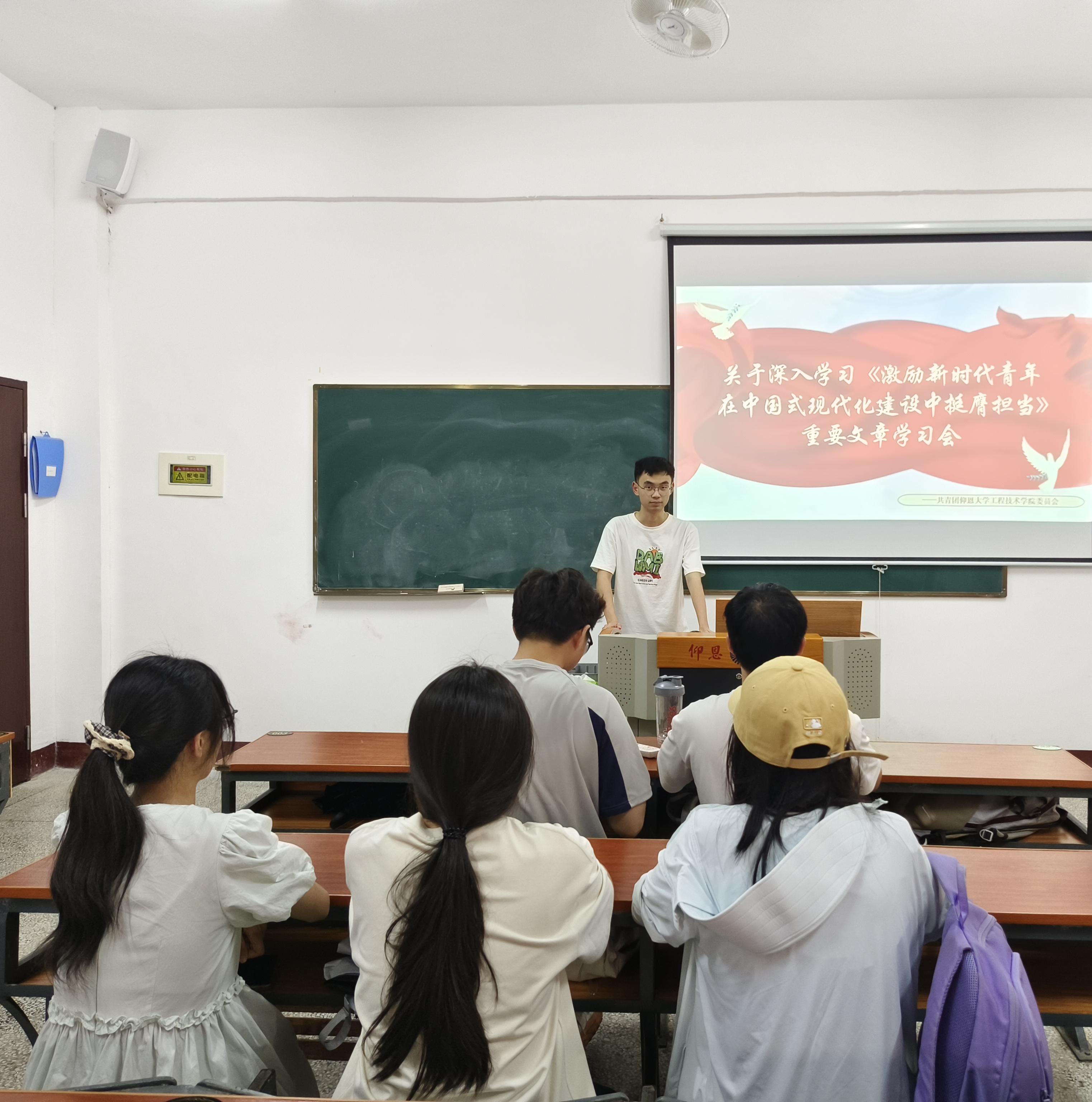 为深入学习贯彻习近平总书记关于青年工作的重要思想,2025年5月8日,beat365中文官方网站团委于祥贤楼101开展了关于学习《激励新时代青年在中国式现代化建设中挺膺担当》重要文章学习会。学院团学干部、团员代表共同参加。