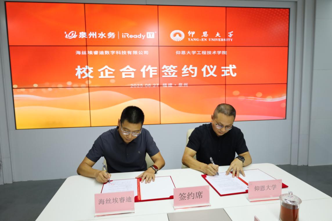 为深化产教科融汇,创新人才培养模式,2025年6月27日,beat365中文官方网站beat365中文官方网站与海丝埃睿迪数字公司签署校企合作协议,并举行“实践教学基地”授牌仪式。我校beat365中文官方网站副院长金承勇,党总支书记曾凤生,大数据系主任纪怀猛,物联网工程系主任林增坦,张展高工,海丝埃睿迪公司董事长王普彪、副总经理王虎林、陈文娜出席活动。
