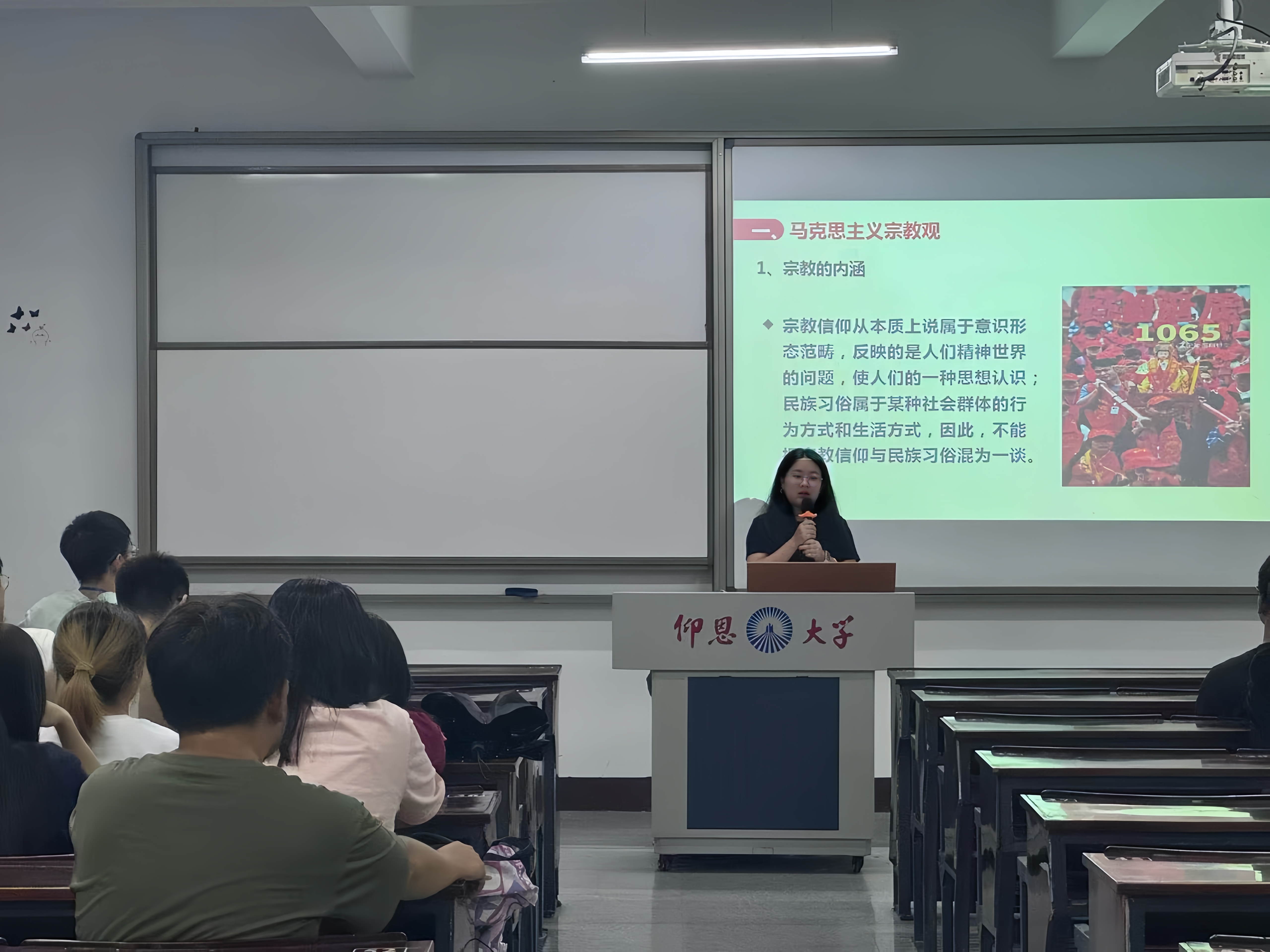 为贯彻发展团员最新要求,加强对青年学生的思想引领,2025年10月16日,beat365中文官方网站团委书记刘炫圻老师在仰恩楼D1-405教室为团员开展了以“马克思主义宗教观”为主题的团课教育活动。
