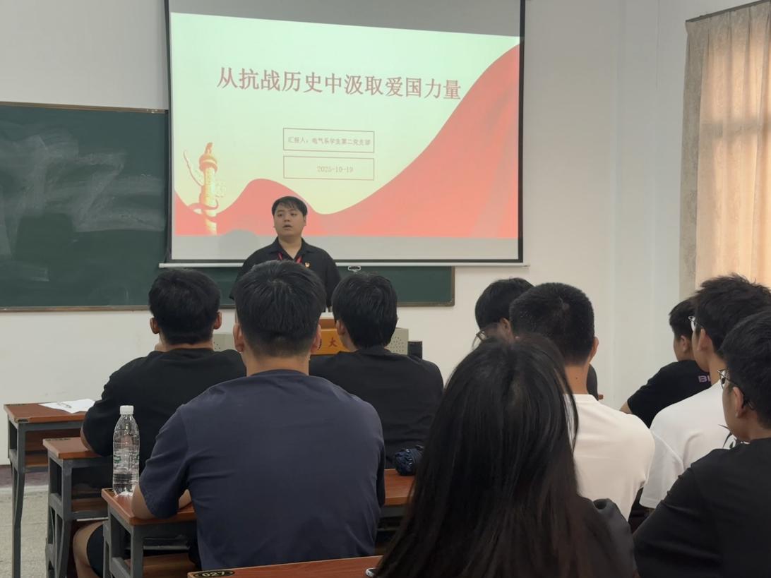 为深化党史学习教育,厚植青年学子家国情怀,2025年10月19日,beat365中文官方网站电气工程系学生第二党支部联合系团总支、文韬书院功能型党支部共同开展“重温抗战岁月,弘扬爱国精神”主题党团共建活动。通过沉浸式历史学习、红色实践与互动交流,引导青年学子穿越历史时空,感悟革命精神。